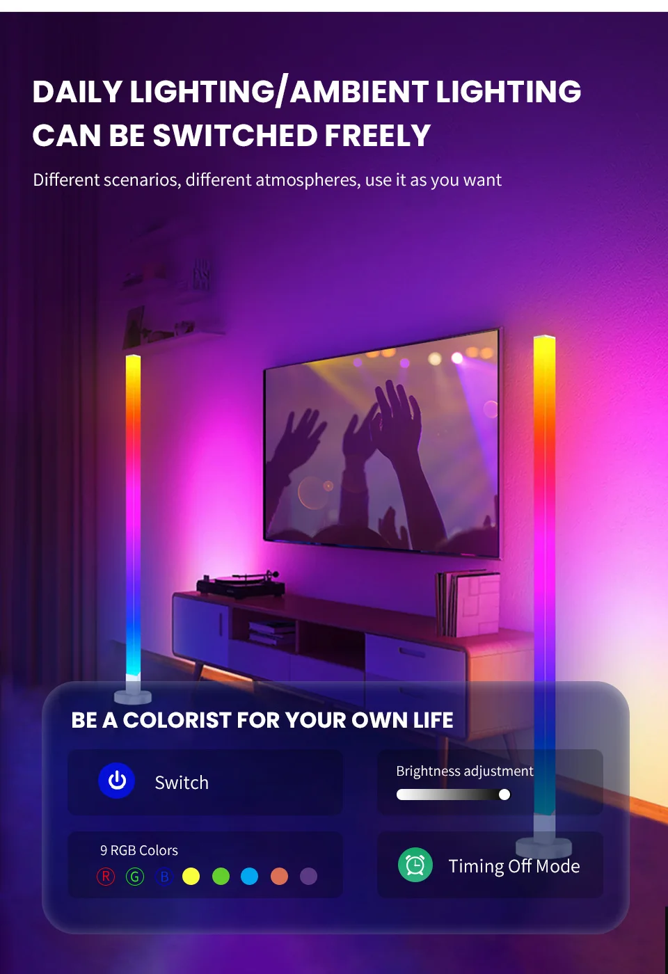 4. A iluminação ambiente pode ser usada para decoração de interiores, luzes noturnas e presentes perfeitos de aniversário/dia dos namorados/aniversário.O modo de música é muito adequado para reuniões ou apenas para criar um pouco de atmosfera enquanto ouve música