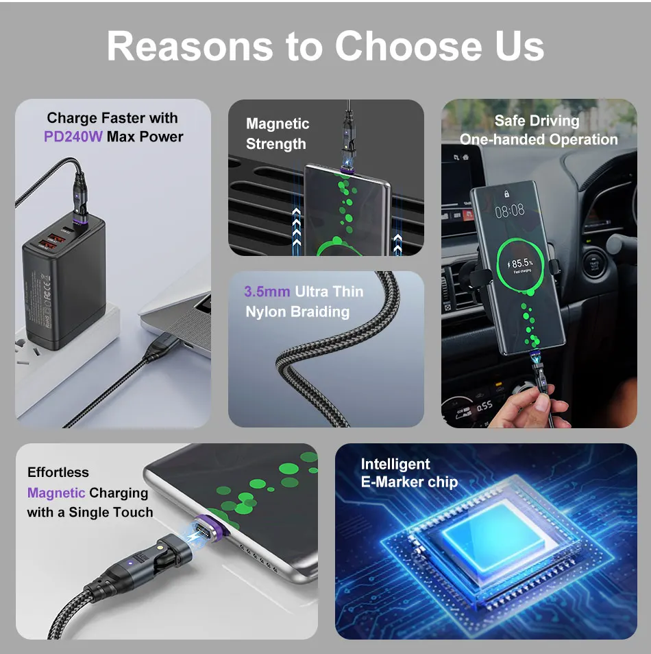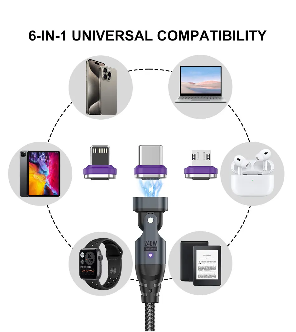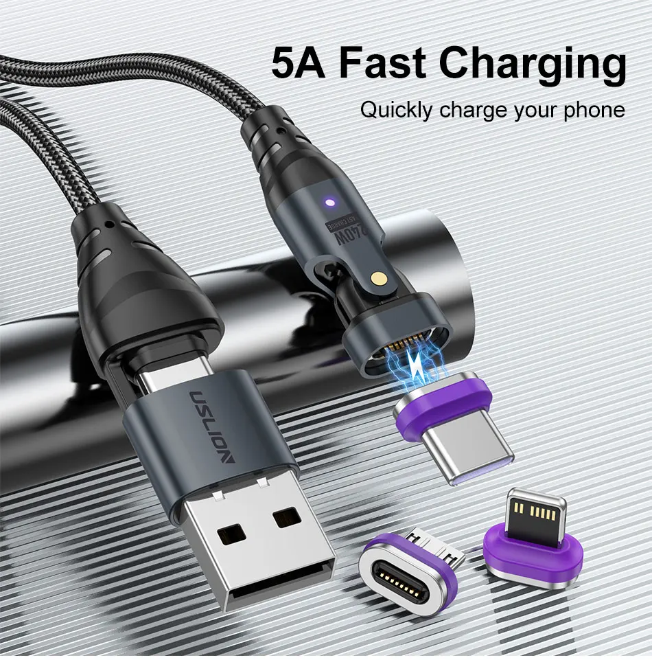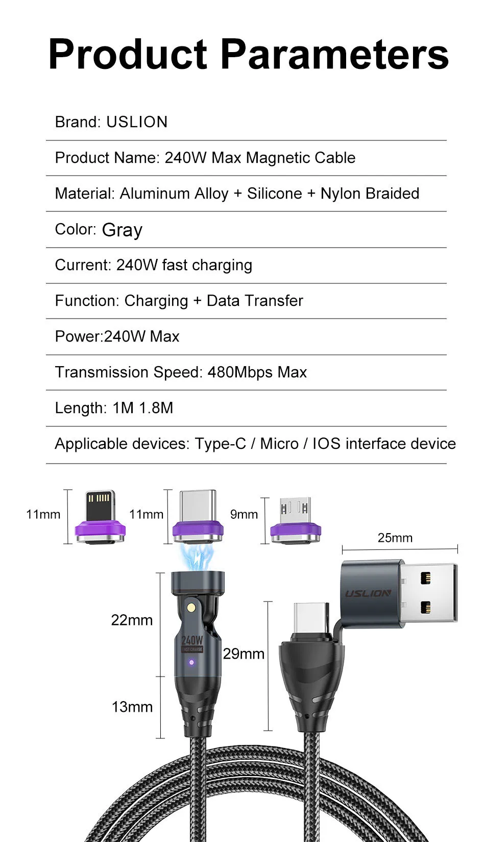 Material do cabo magnético: liga de alumínio + silicone + nylon trançado