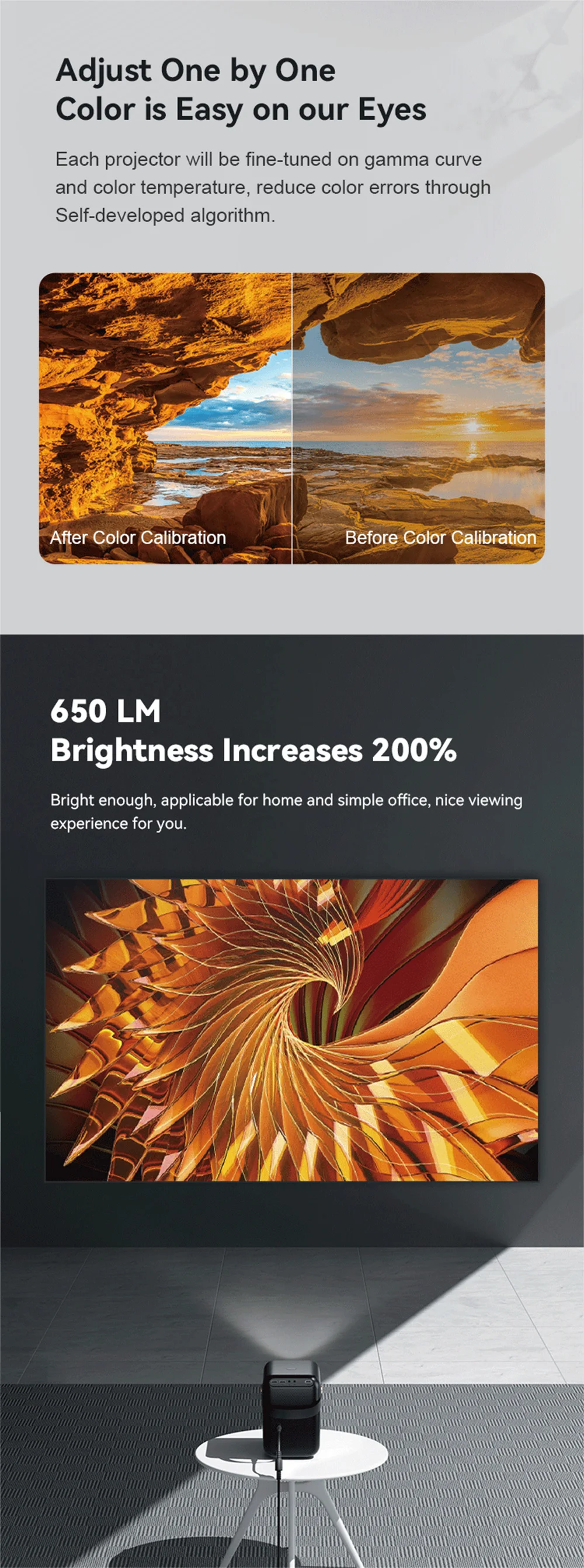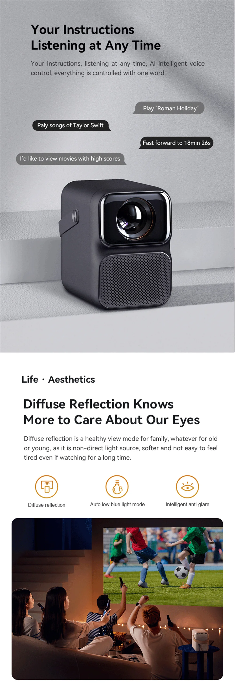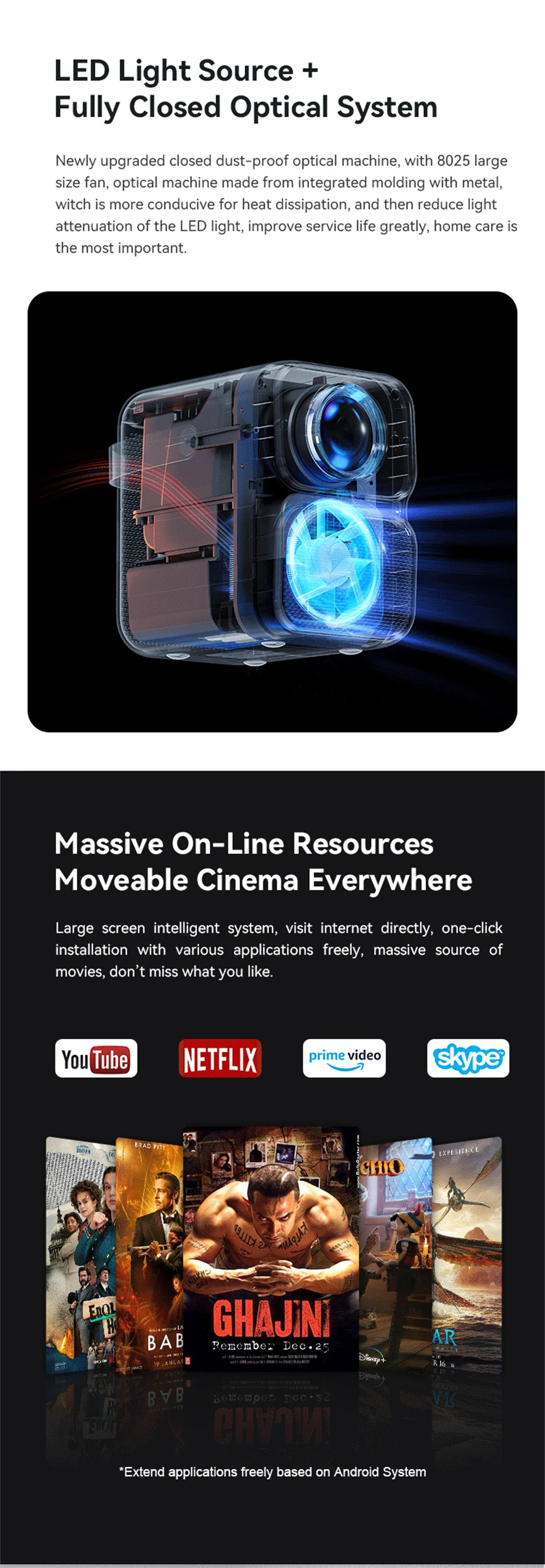 Para atender melhor às suas necessidades, atualizamos o Wanbo T6 MAX com os mais recentes 550 Lumens e a resolução nativa de 1920*1080 (Suporte MAX: 4K). Suporte 2.4G/5G WiFi & BT, assim você pode sincronizar a tela do smartphone por 2.4G e 5G WiFi