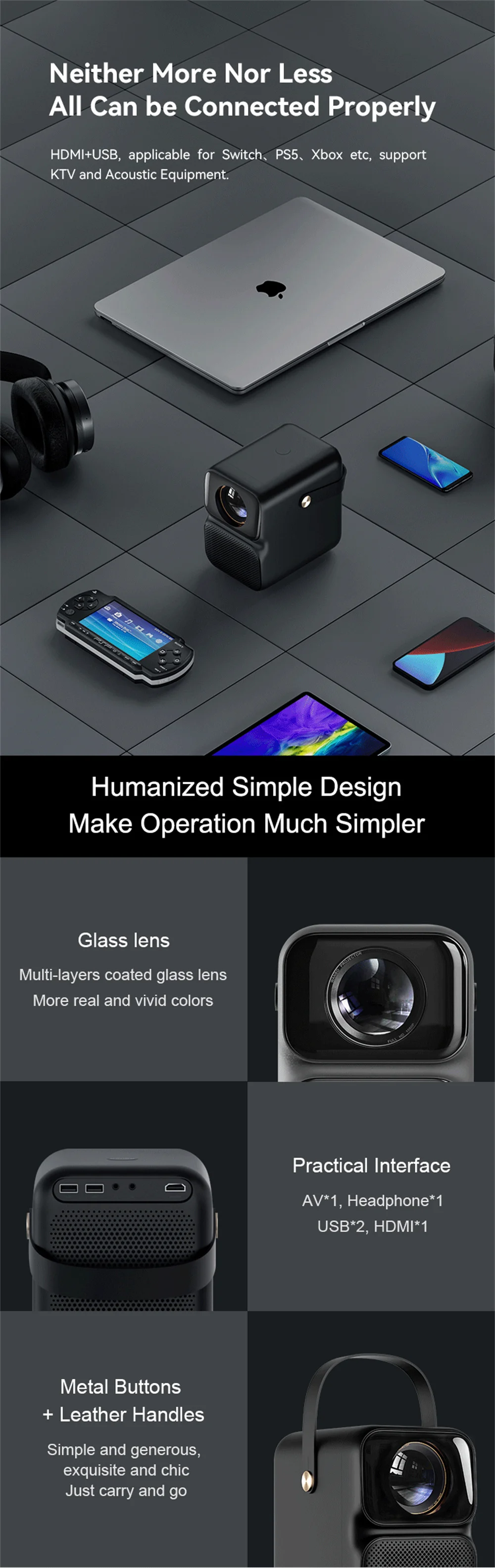 Com o built-in HDMI, AV, porta de auscultadores USB e incluído AV & cabo HDMI, este projetor é a solução perfeita para uma ampla variedade de fontes de entrada inclui mas não limitado a TV Stick/Box, Consolas de jogos, PCs, telefones inteligentes, tablets, laptops, DVD player, e pendrives.