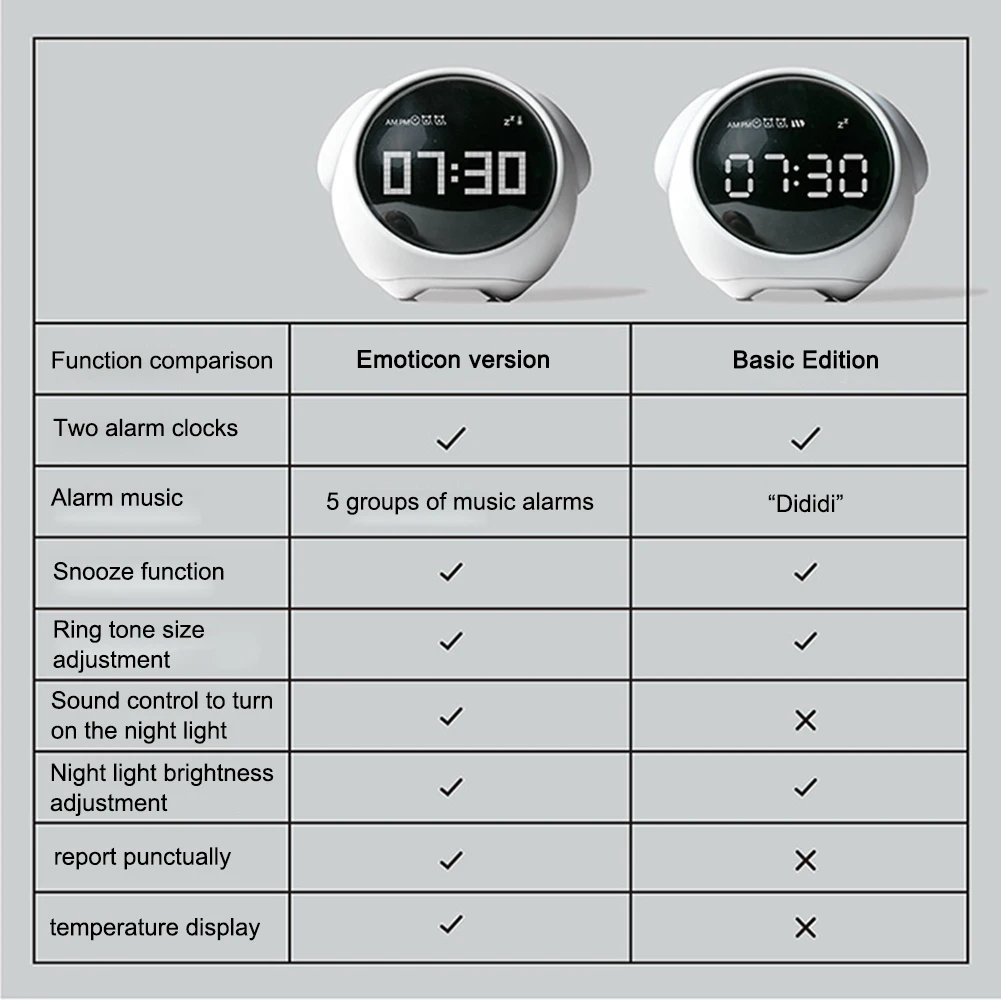 1.Exibição de tempo com luz suave, clara e confortável para os olhos.Despertador com borda lisa e adequada, sem danos aos seus móveis finos.