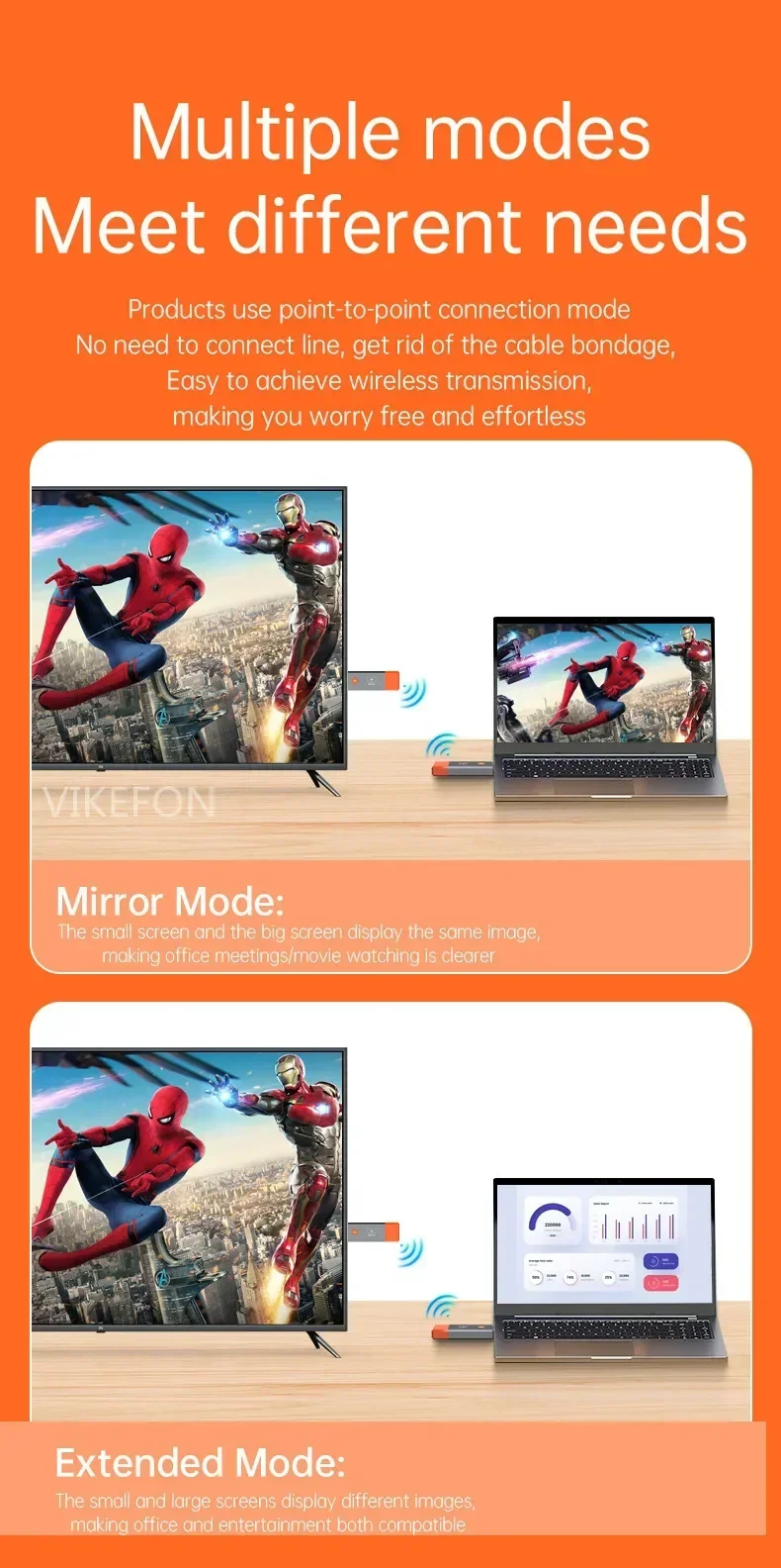 ?Altamente Compatível?A interface HDMI é altamente compatível e pode ser convertida para outras interfaces.VIKEFON O dispositivo com interface HDMI pode ser usado diretamente e o dispositivo sem interface HDMI pode ser usado com conversor HDMI.Transmita sem fio vídeo 3D de alta definição 1080p e áudio digital para sua TV ou projetor.Assista a filmes e séries no seu laptop, PC, MacBook, iPad Pro, receptor A/V, console de jogos, PS4/5, Xbox, Nintendo Switch, cabo/satélite.