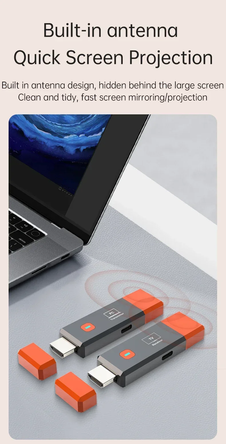 2.Transmissão de vídeo e áudio HDMI via protocolo de transmissão sem fio integrado, sem necessidade de wifi ou internet.