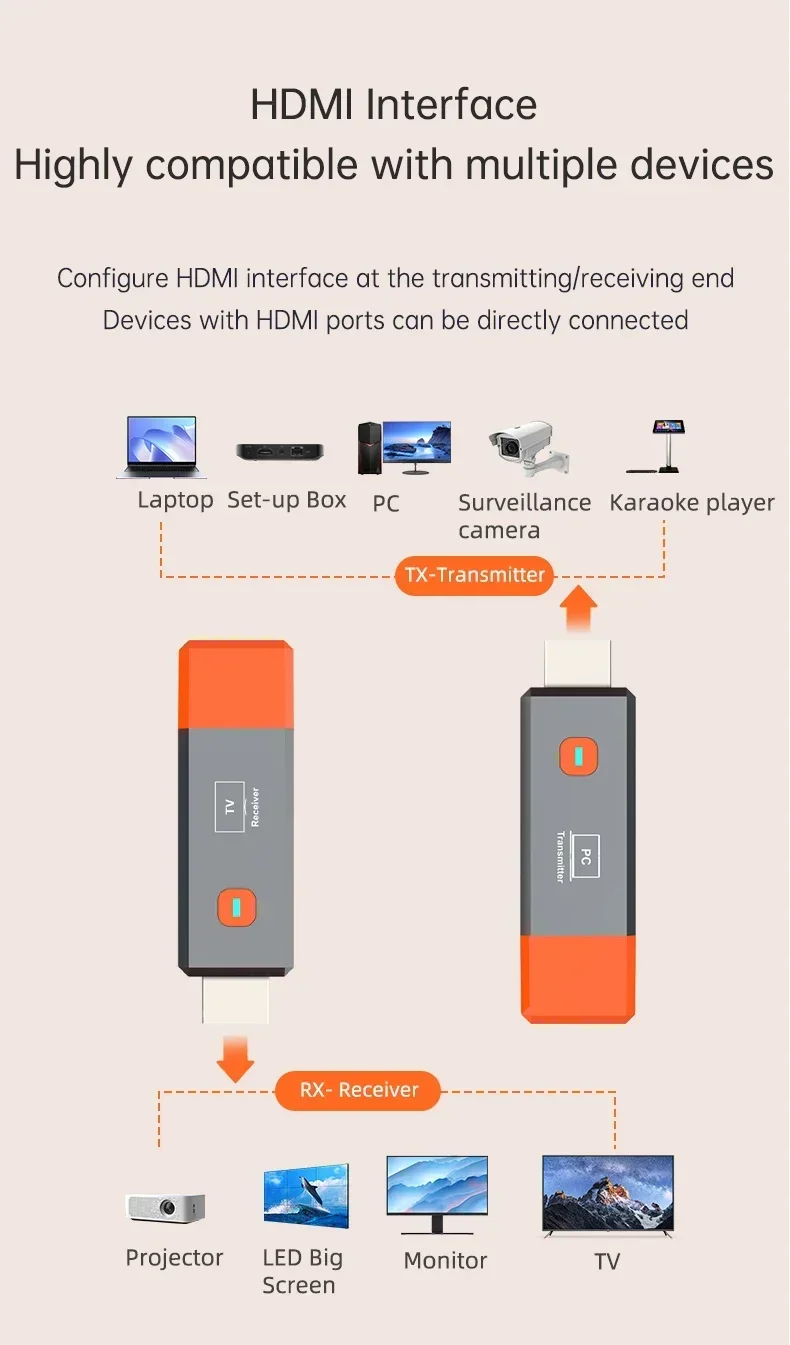 Model Number: 50M Wireless Video Transmitter Receiver HDMI-Compatible Extender